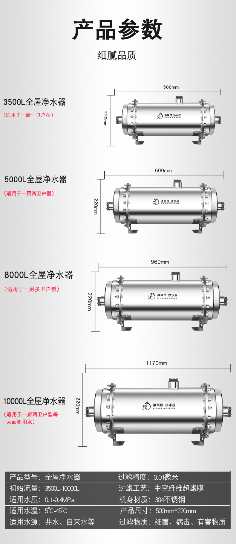 净莱泉全屋中央净水器家用大流量自来水船用海农村地下井水过滤器